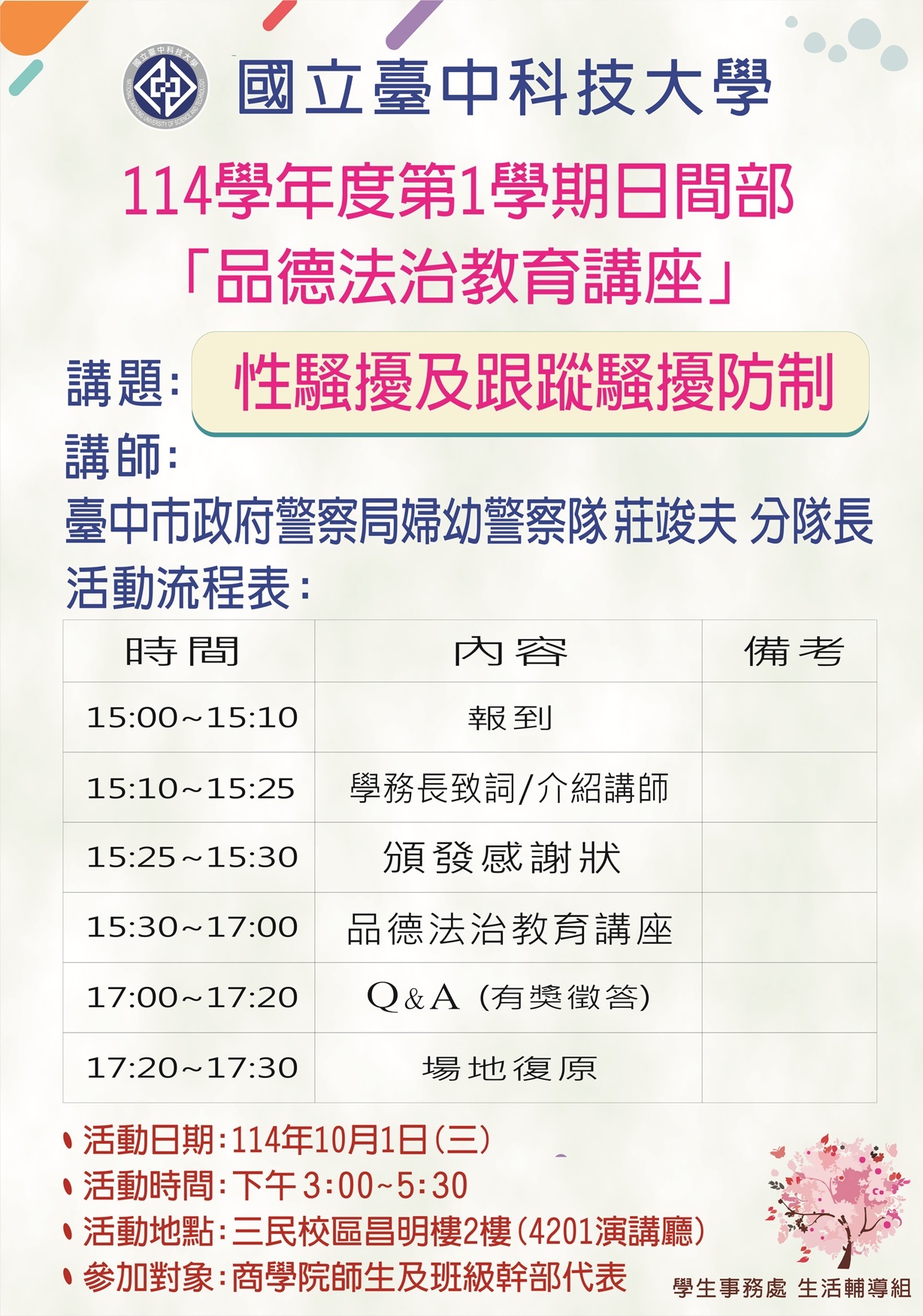 臺中市政府警察局第一分局114年強化各級學校師生及家長法治教育教學宣導